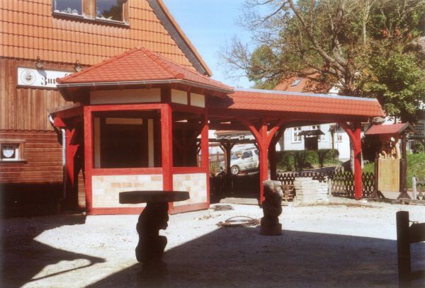Im März 2003 errichteten wir auf einem alten Naturstein-Erdgeschoß dieses Fachwerkhaus auf dem Marktplatz in Rübeland bei Wernigerode. Es wird in Kürze eine Holzbildhauerwerkstatt beherbergen. Viele Schnitzereien sollen am Fachwerk vorgenommen werden. Ein Besuch lohnt also.