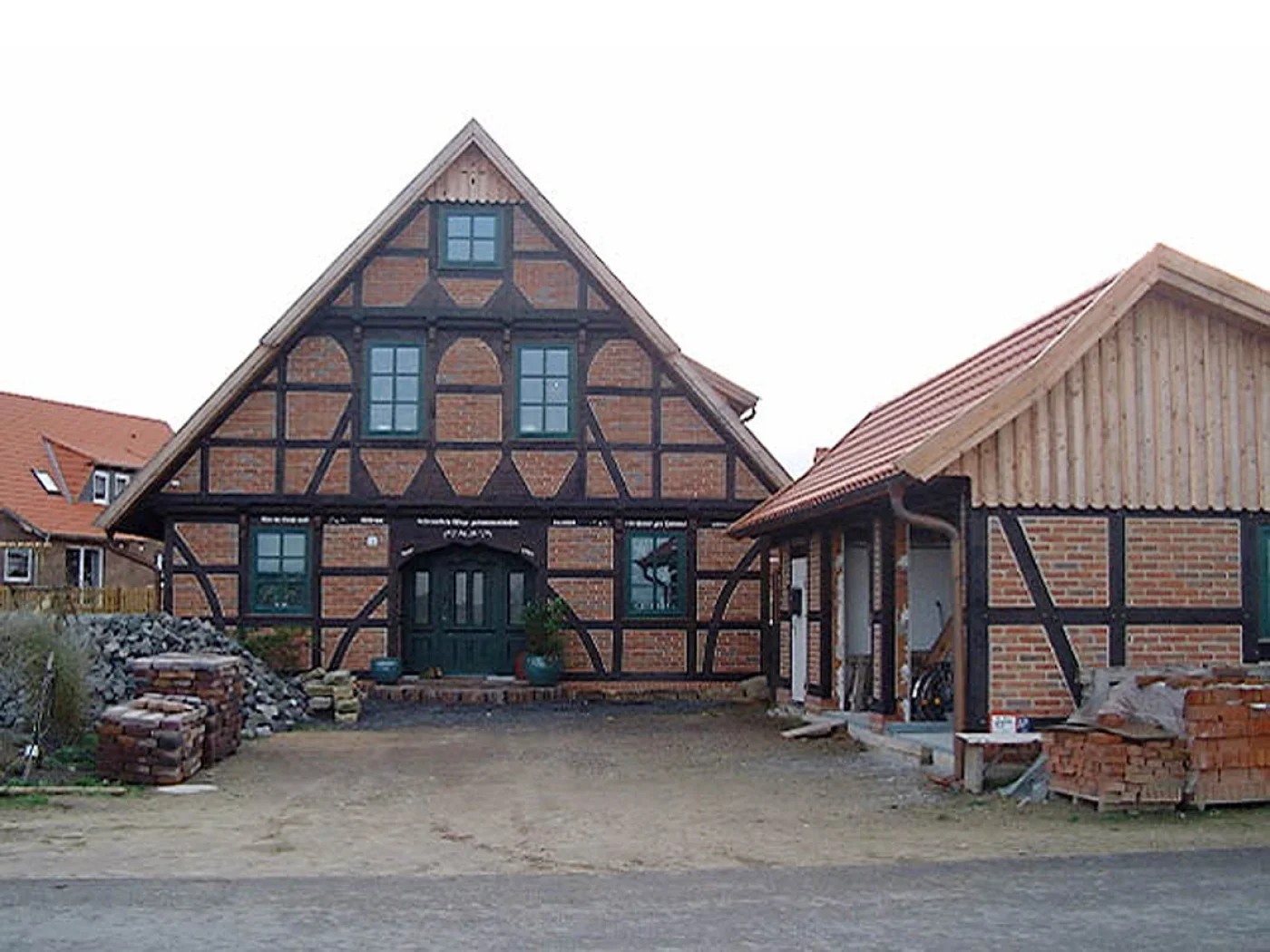 Durch die Anordnung des Hauses in Bissendorf mit 154 qm Wohnfläche und separater Remise als Stellplatz für Auto und Gartengerät bildet sich hier eine Hofanlage aus.