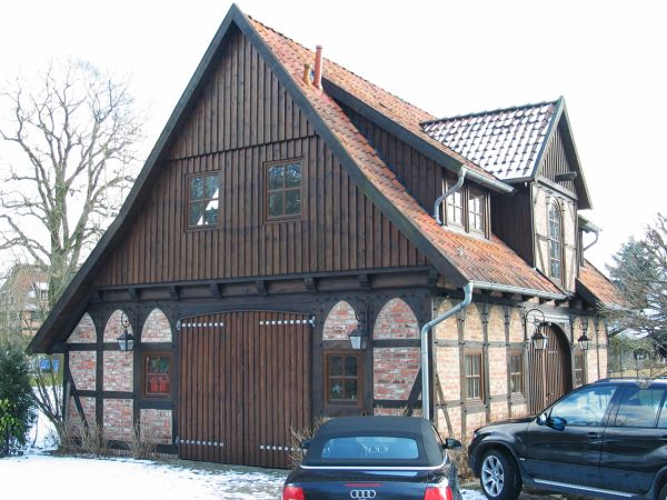Dieses Fachwerkhaus in Scherenbostel besteht überwiegend aus alten Eichenbauteilen und wurde dem vorhandenen Holzbestand entsprechend entworfen. Es beherbergt nun ein Lager, ein Büro im Obergeschoß sowie ein Atelier im Anbau.