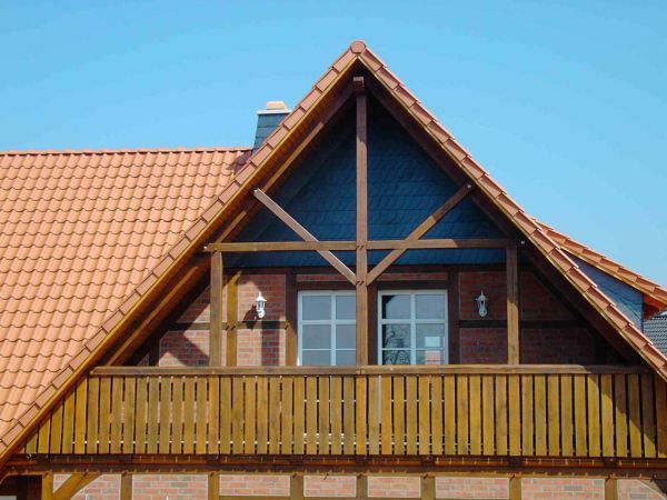 Bei diesem Fachwerkhaus in Uetze wurde ein Balkon über dem Wohnbereich ausgeführt. Liebevolle Details und die harmonische Farbgebung zeugen vom Geschmack aller Beteiligten.